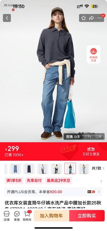 👉🏻【京东】https://u.jd.com/pDL9V24 CA1393 「优衣库女装直筒牛仔裤水洗产品中腰加长款25秋冬477334 480743 480743/65宝蓝色 30 /165/76A」