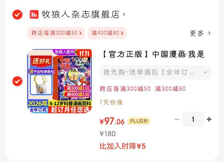 📚《中国漫画·我是不白吃杂志【全年订阅】26年1-12月订阅》