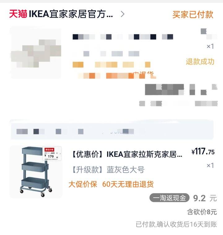 2.宜家拉斯克推车大号——117.75元-返利9.2元=108.55元