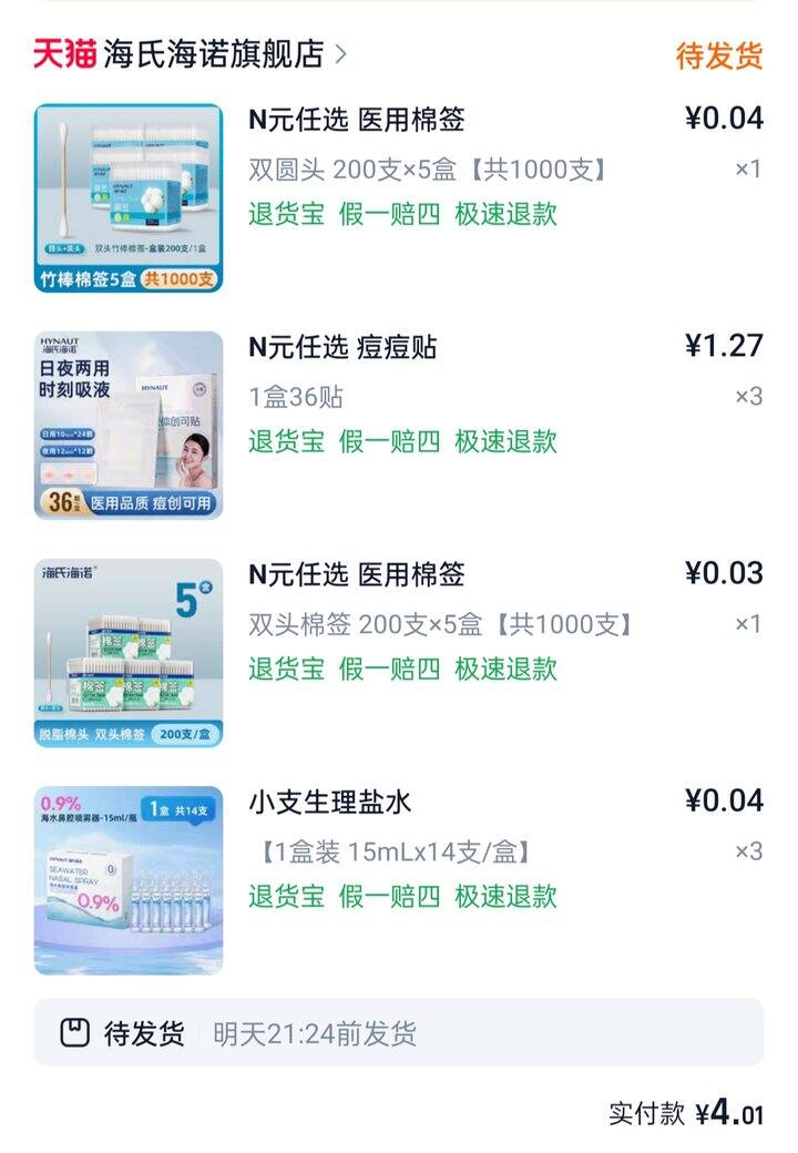 3.海氏海诺——好不容易薅的羊毛,被淘宝退款了,赔了我10元红包😅