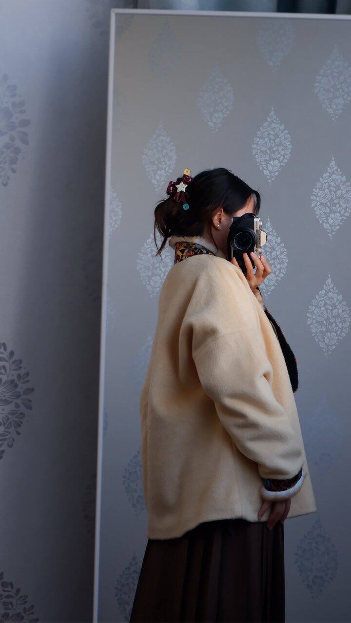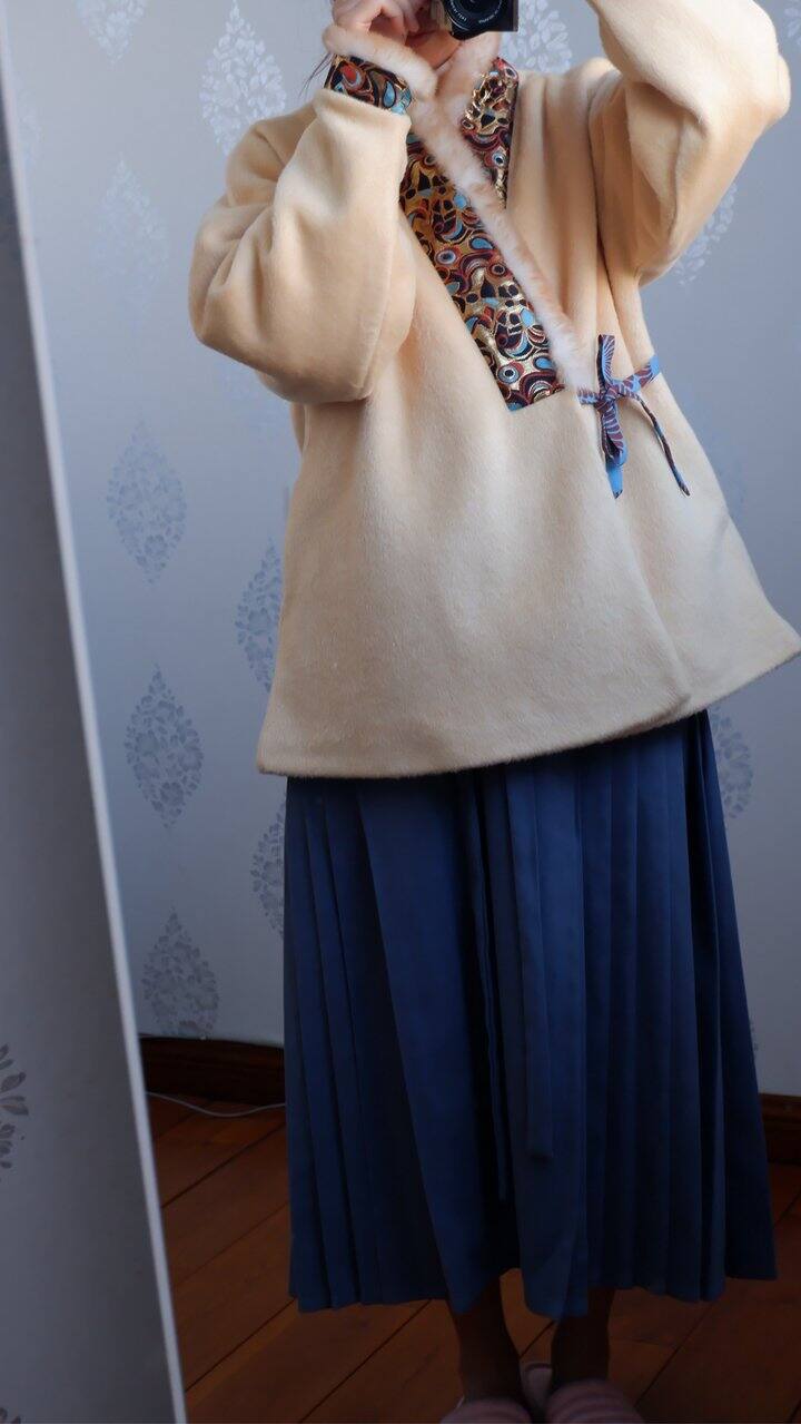 加绒款,很好看的黄色,布料还有点[闪耀]亮晶晶在里面