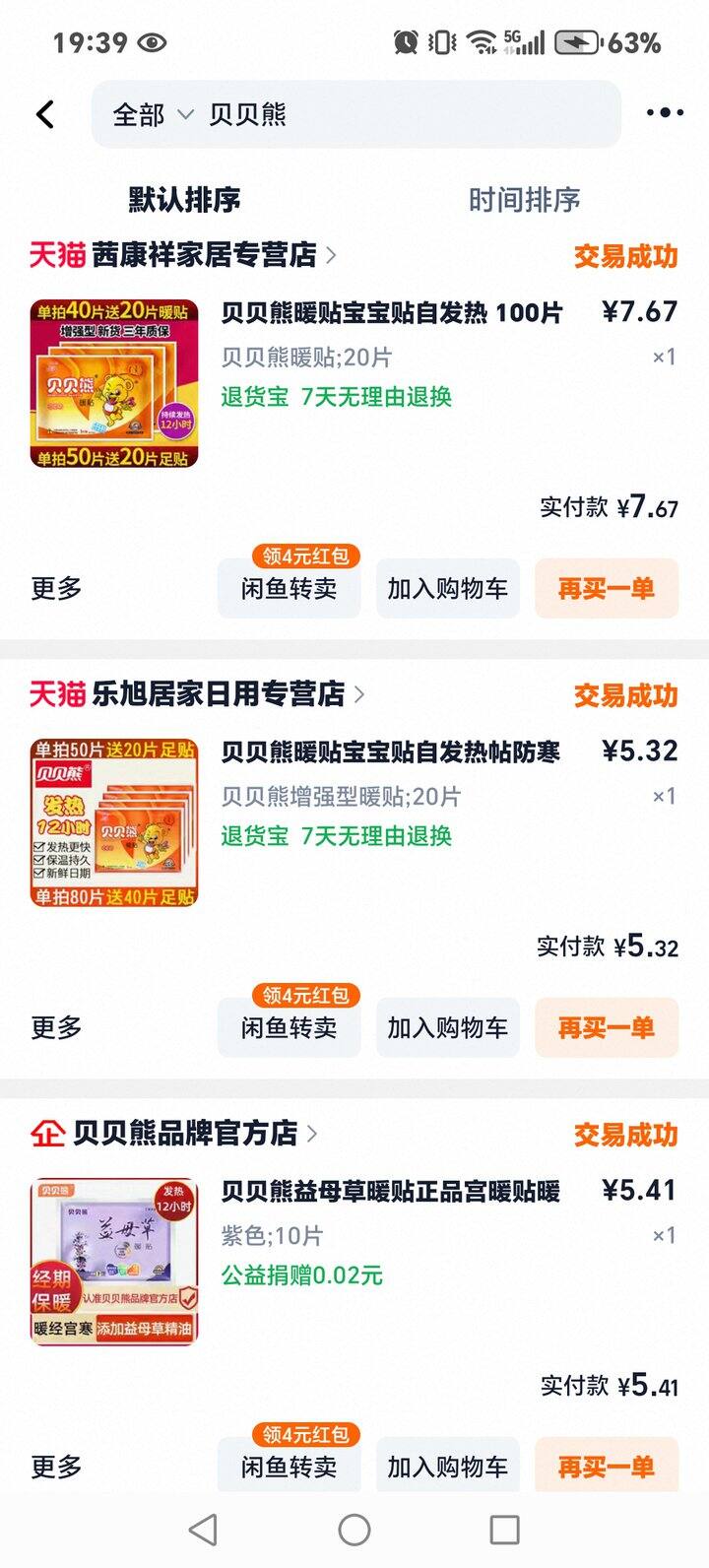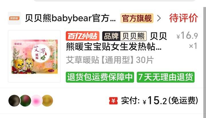 2.贝贝熊暖贴|暖宝宝:这个牌子的暖贴是我用过的,持续时间最长,而且不烫人,只要隔一件衣服贴,完全不会被烫到。我在各个平台都买过,也买出一点点经验了,大家就对比一下好价,如果是低于五毛一片,就是大赚特赚。以前的淘宝好价是用了签到红包。