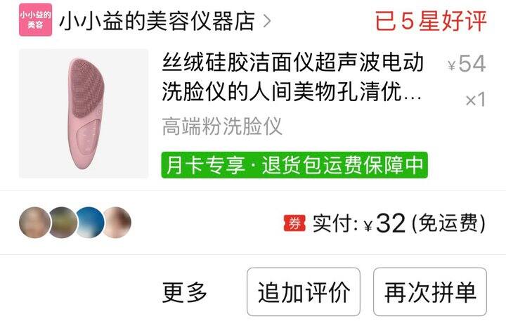 结果我上pdd搜着搜着,看到了各种各样的洁面仪,就不想买foreo了,想买个新样式的试试。买的用下来还可以,我真购物小天才😇