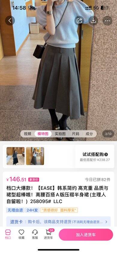 档口大爆款!【EASE】韩系简约 高克重 品质与裙型超棒哦!高腰百搭A版压褶半身裙(主理人自留啦!) 258095# LLC