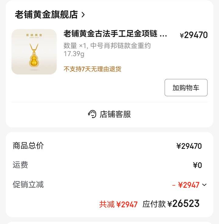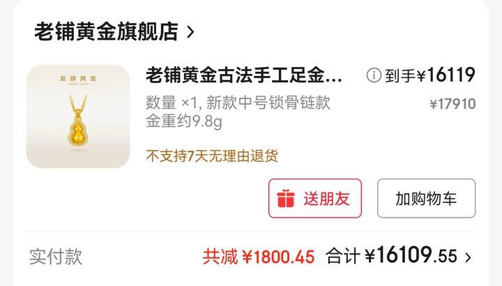 没有付款的大葫芦Mark一下价格,克价1500,今天一看17.39的定价涨了6500,老铺你真行👍