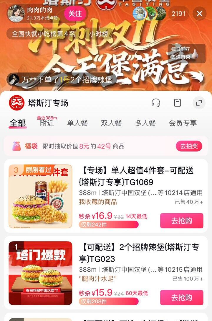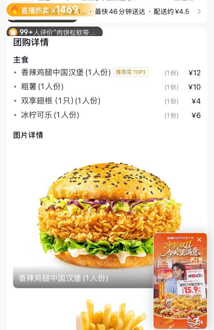 刷dy呢突然跳出来一个直播间,火速下了3单后变价了。汉堡+薯条+翅根+可乐=6块钱,美滋滋美滋滋[胖鹿酷][胖鹿酷][胖鹿酷]