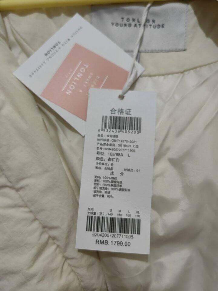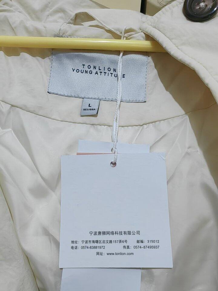 说是糖狮的尾单,137.4,物与价同!衣襟用扣子闭合很不解!收到的这件最下面的扣子掉了,给放口袋里。没有异味。布料和坦博尔的轻羽绒款一样。毛条还蓬松的