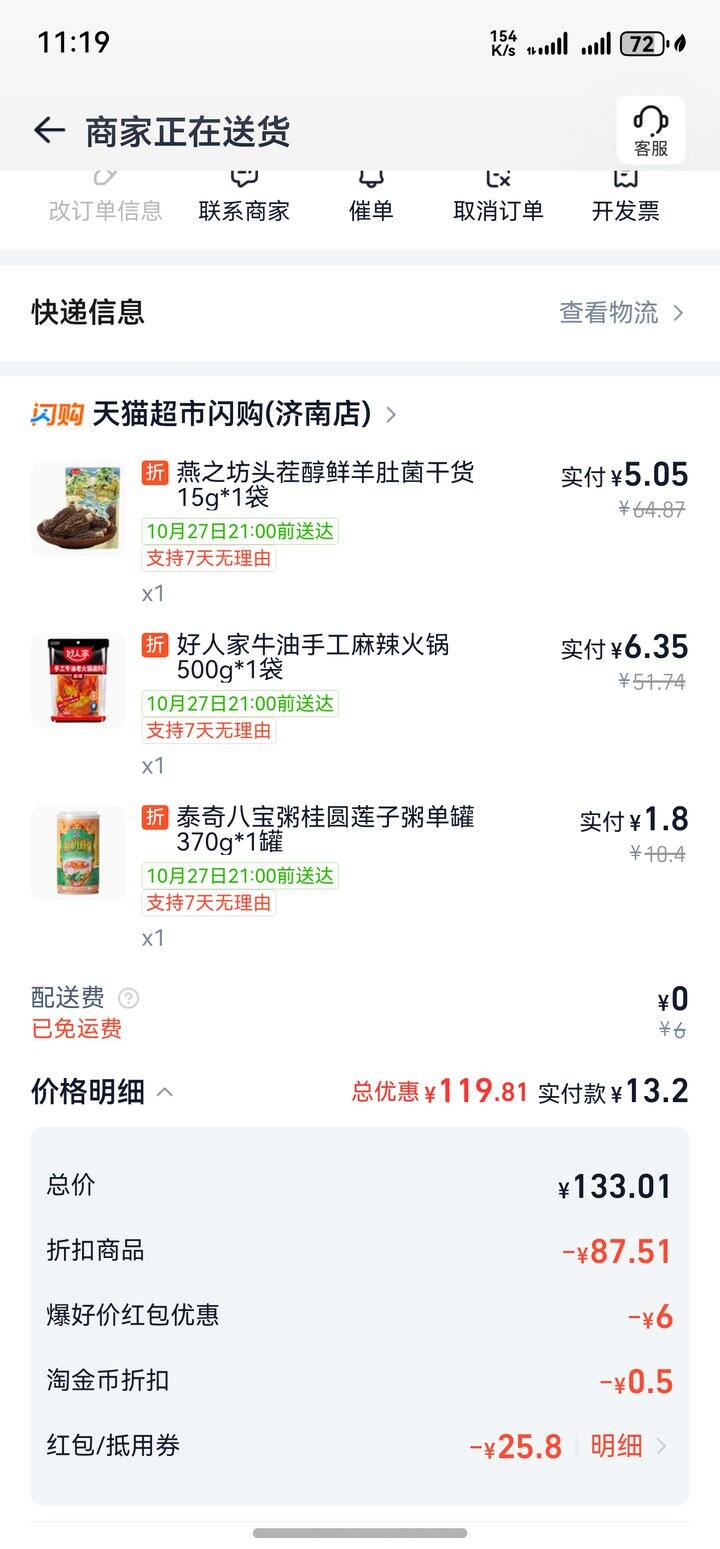 闪购买火锅底料,价格很牛[发呆][发呆]