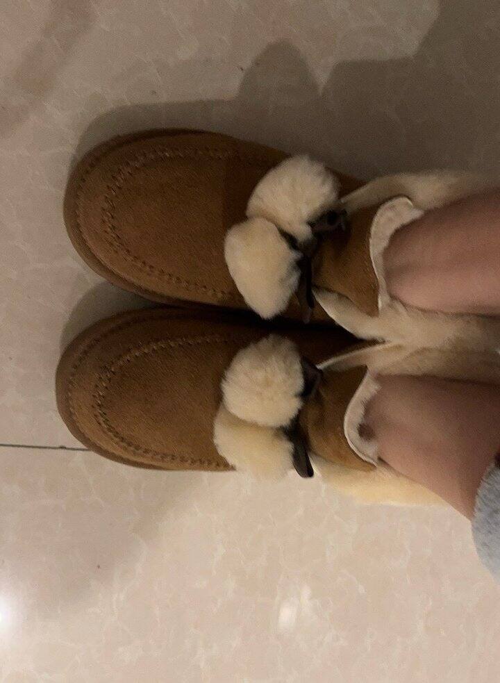 UGG秋季女士舒适蝴蝶结翻折鞋口懒人毛毛鞋1153517CHE|栗色