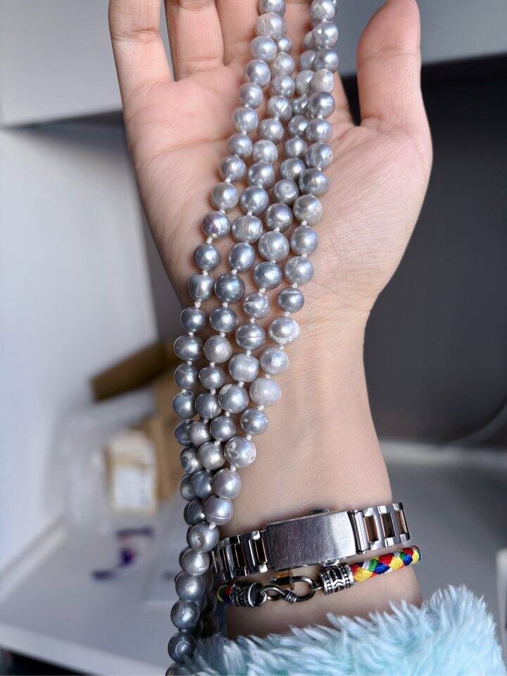 注意:是天然珍珠但不是天然色,这么明显的灰蓝色一定是辐照处理过的,很常见的处理手法,你们在直播间在淘宝店线下店看到的不贵的这种颜色绝大部分都是处理过的。不是染色不用担心对人有害啥的。