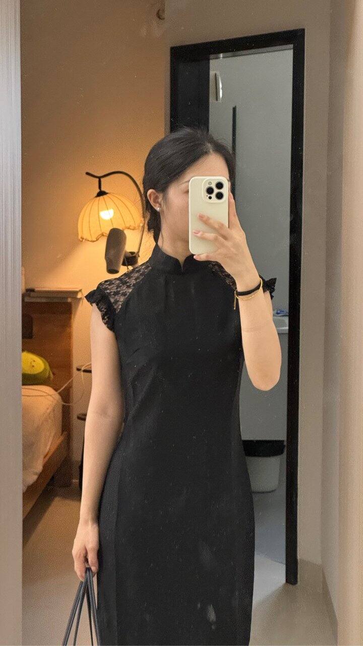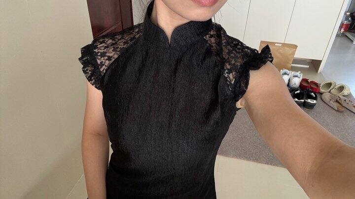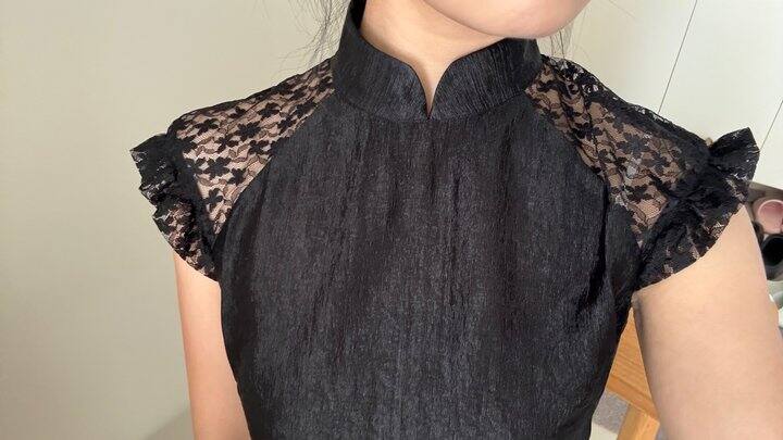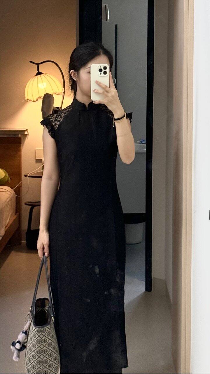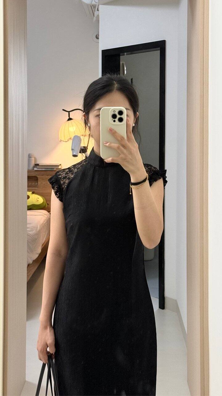 衣柜里第三条黑色旗袍。可惜有点凉了,这个料子很舒服透气,回头把绿色那条一起买了!!!