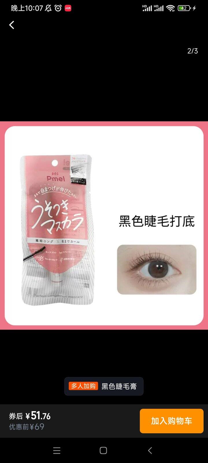 2.pdc撒谎睫毛膏 40购入透黑色 这个色号停产了 囤一个 准备当作恋爱魔镜bk999的打底