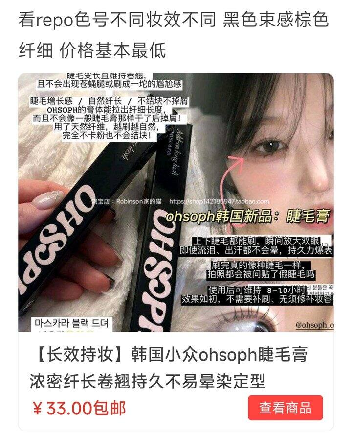 4.ohsoph 33购入黑棕色 今年购入的唯一一只韩系睫毛膏 希望好用 买完刷到一堆差评 xhs服了你了