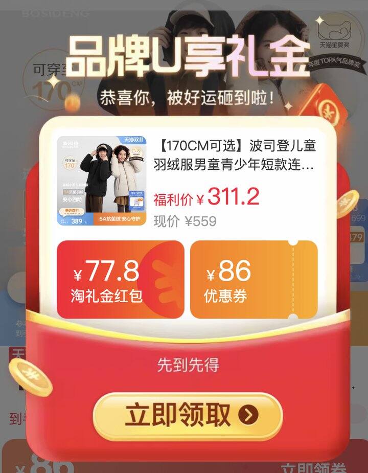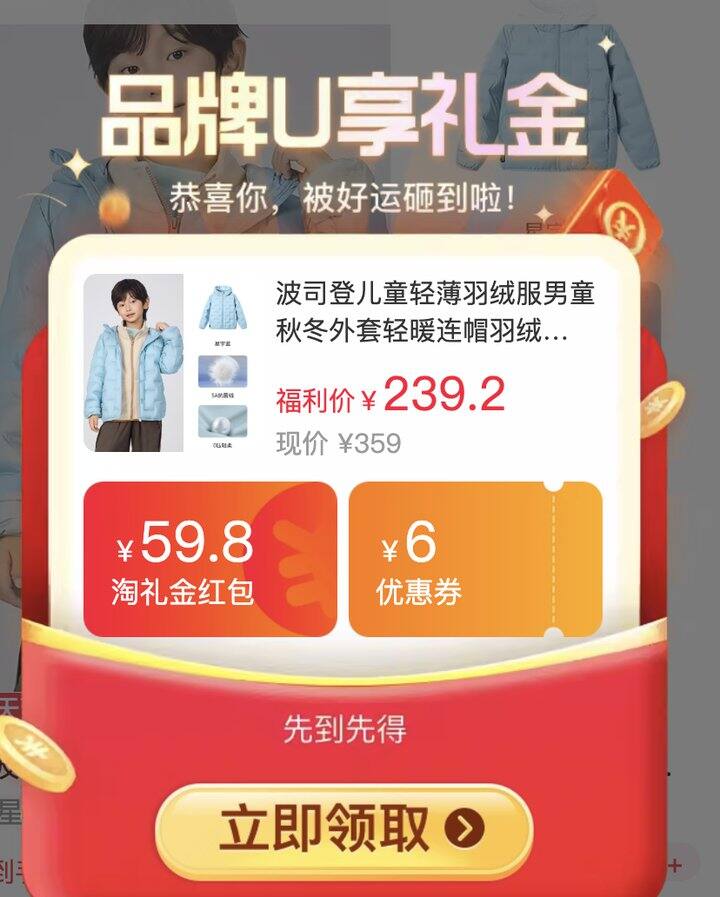 波司登儿童羽绒服:https://s.click.taobao.com/aqGWmop,领63.8淘礼金,71券,宝贝右上角 ··· 点开➠ 右下角“淘金币” ➠ 进入后点“足迹加抵”➠“浏览过”中找到宝贝加购物车;