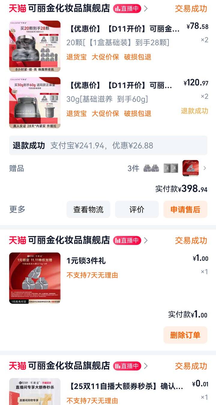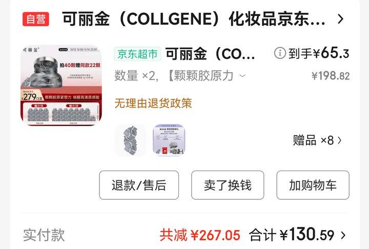 2.可丽金面膜。京东先买,大概2.1元一颗,后面看到淘宝的作业,1.8元一颗。在豆瓣抄的作业,非常复杂,要买券要凑单要这样那样的。大促真的很考资源整合能力[胖鹿捂脸]