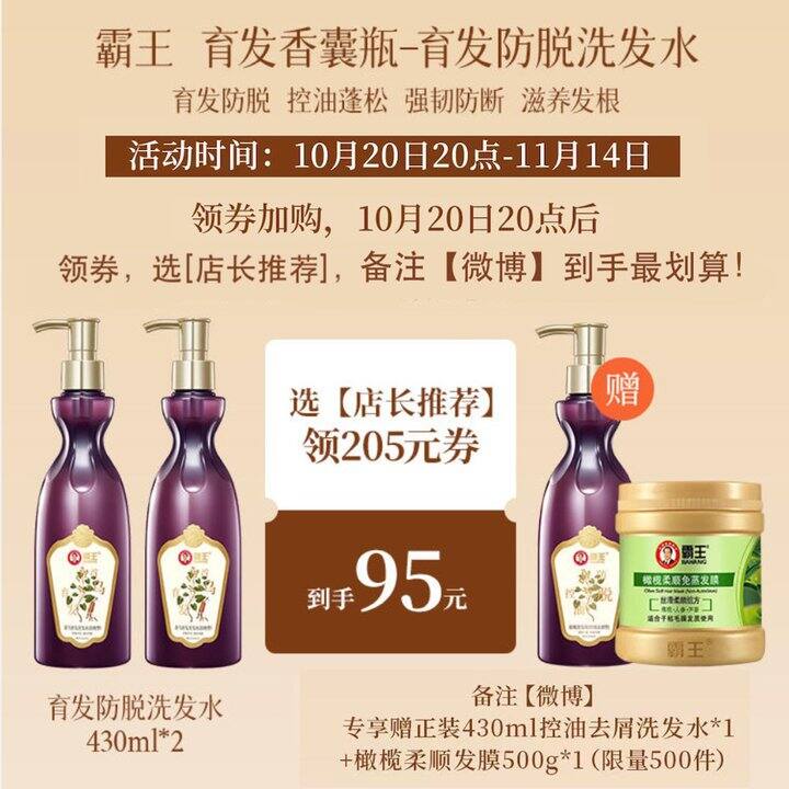 💰95到手3瓶洗发水正装+一瓶发膜 如果有消费券到手85左右