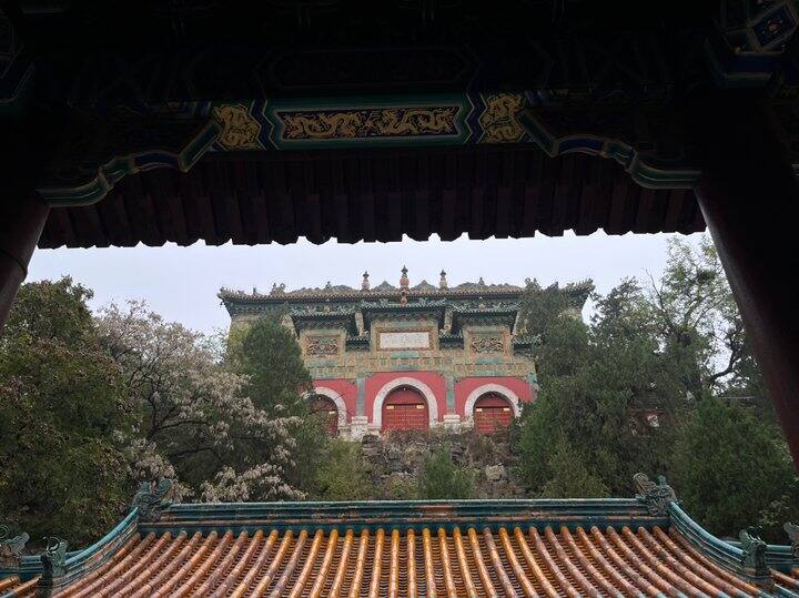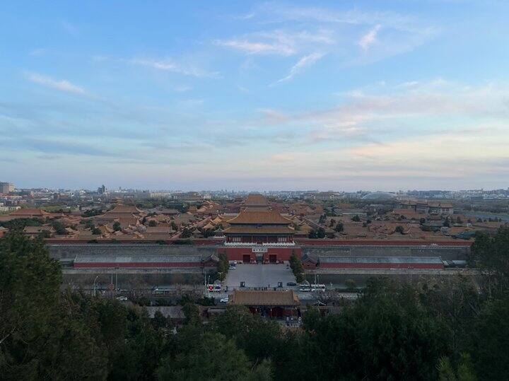 逛完出来就三点左右,就顺路去后边景山公园(可当天购票)逛了一下,主要是俯瞰故宫和北京中轴线。不过现在亭子更近的旁边也上不去了,附一张我23年拍的照片