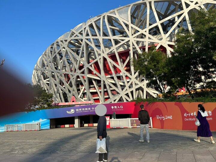 吃完饭一同打车,他们回酒店休息,我回办公室。午睡起来给他们打车去参观鸟巢(可当天购票),逛完刚好可以看鸟巢和水立方的夜景。