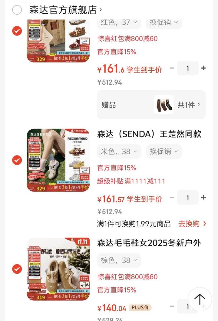 思路✨️参与店铺买三免一,买三双凑够原价1500即可