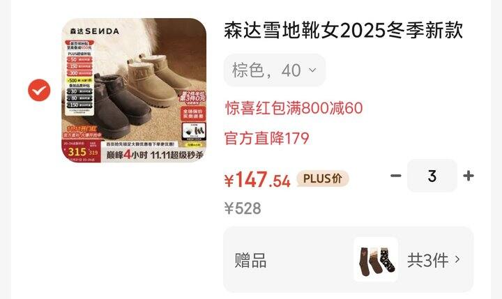 还可以买雪地靴直接买3,到手不到100块钱https://u.jd.com/pOcX74z
