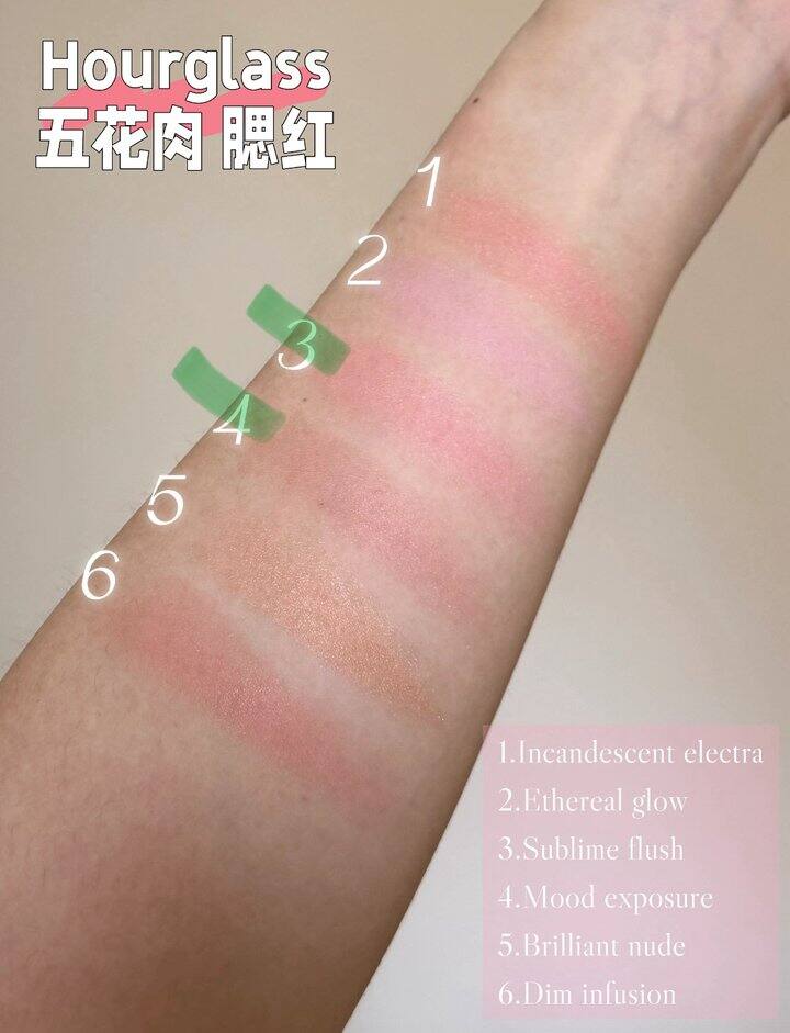 去丝芙兰试hourglass的腮红sf,我自己打下手很轻,柜哥说他帮我上,然后拿了一支密毛的斜坡刷,使劲往上打,说这个色打得面积大有氛围感好看。图太糊了但是也能看出腮红面积真的很大😂。