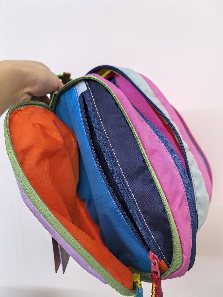 感觉还不错诶,很轻便分区也多,4l的容量可以装很多东西,基本没有什么线头,多巴胺的配色很显眼,就是现在有点涨价了…