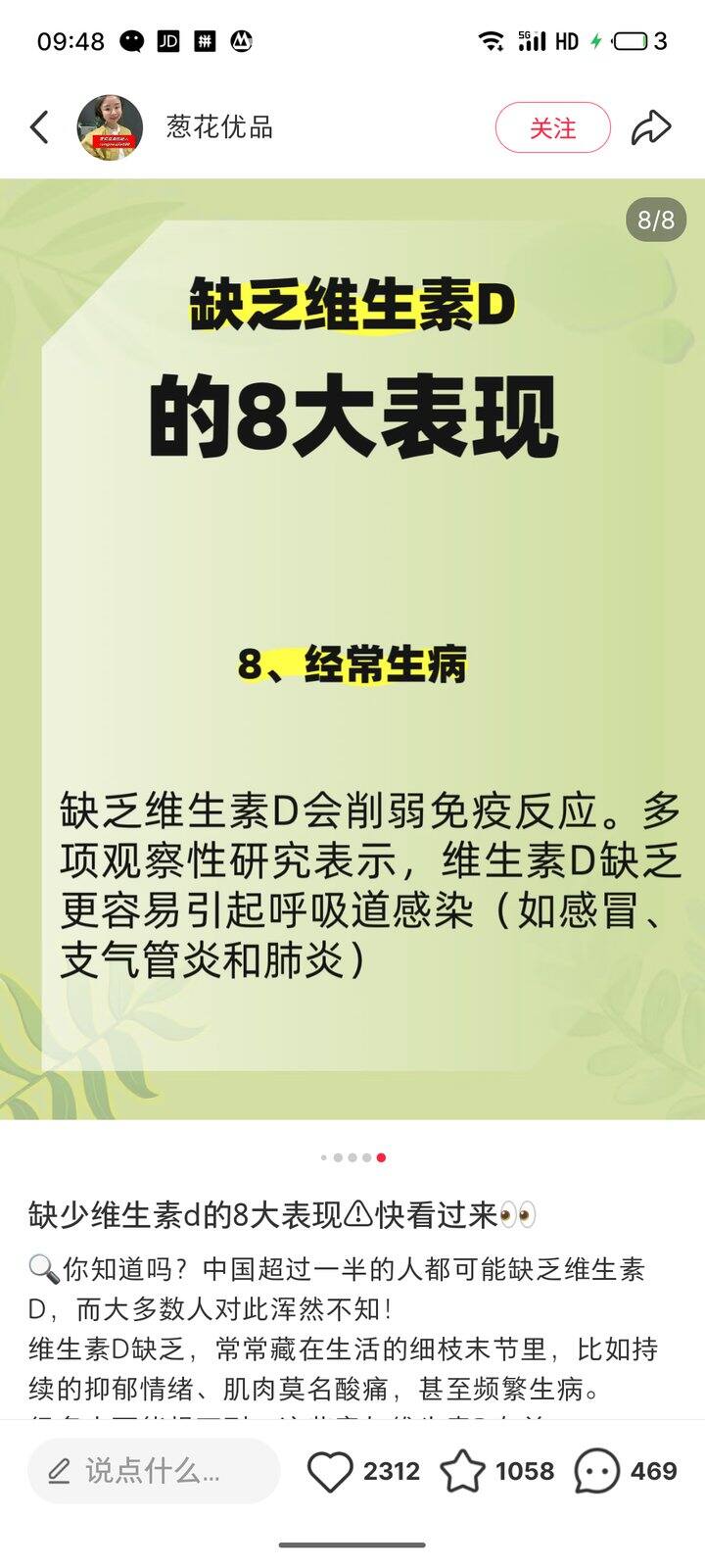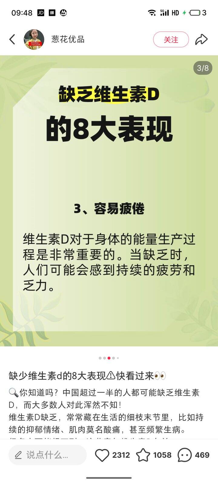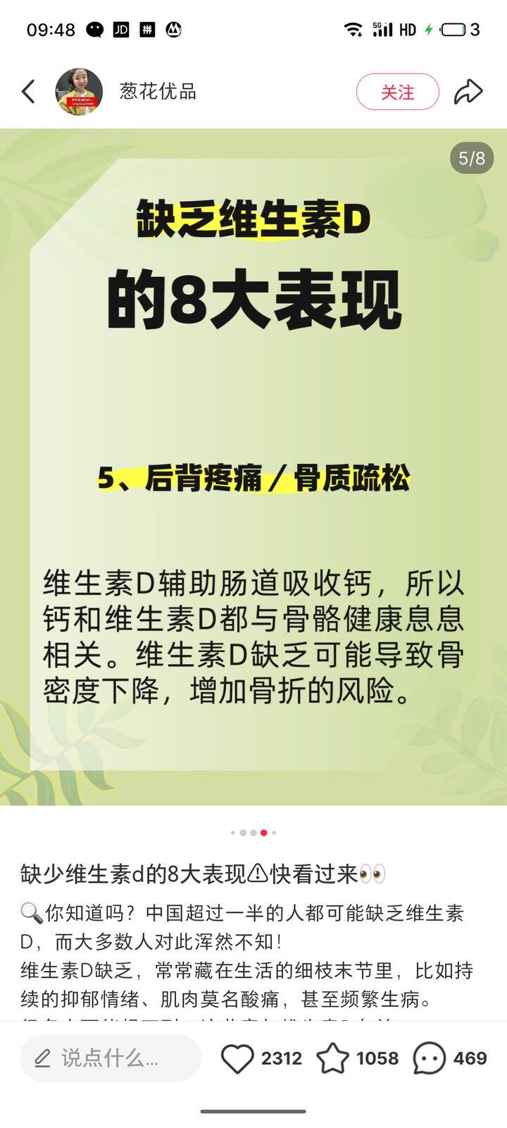 然后我查了下缺维生素D的表现,简直全中!但是大家千万也不要乱补,我看补过量会血钙