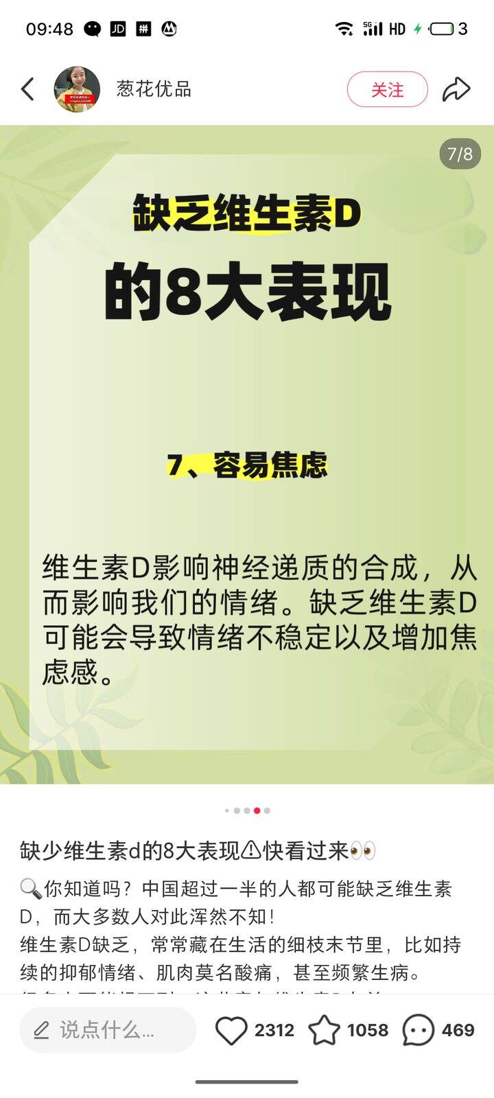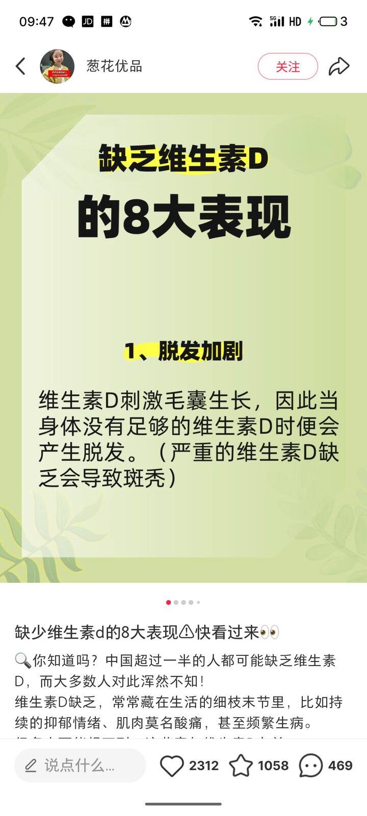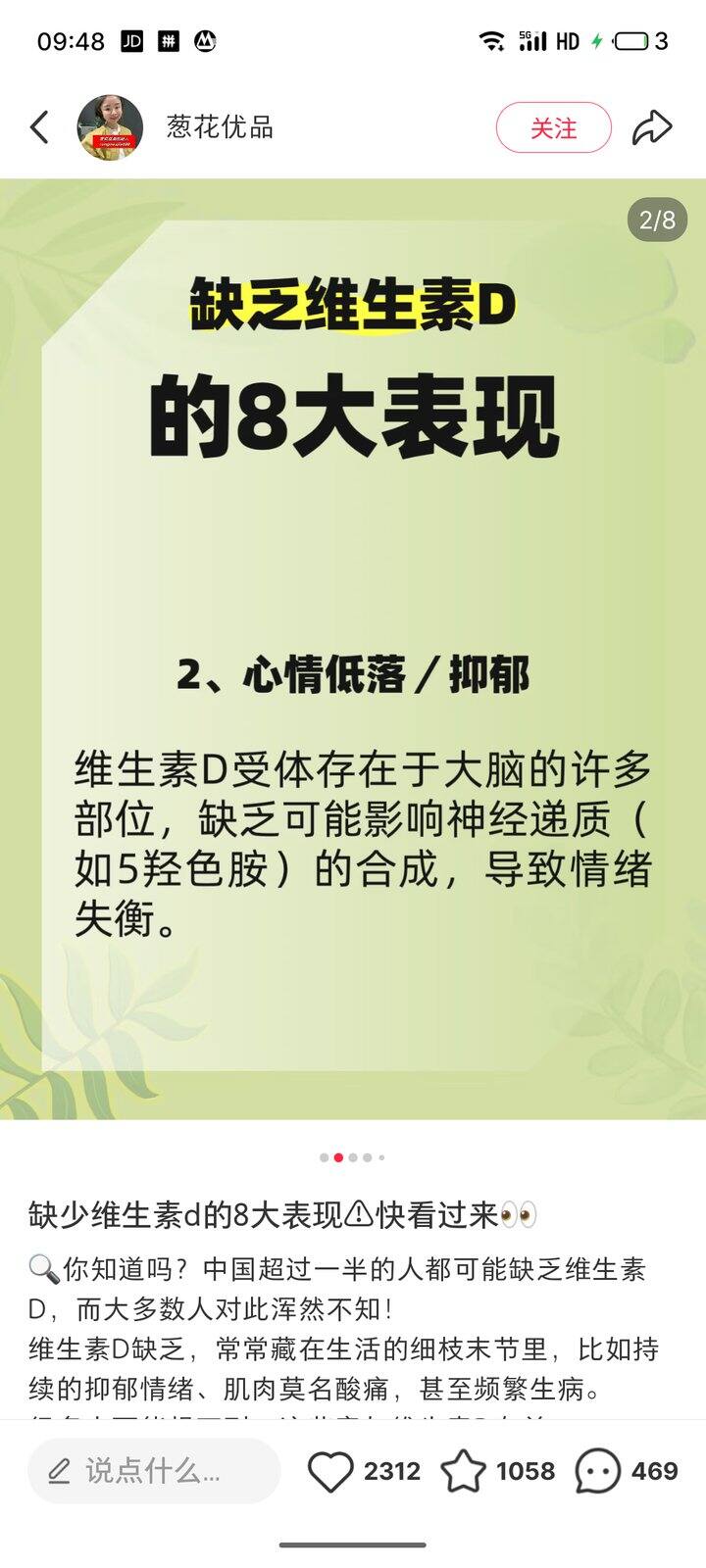 然后我查了下缺维生素D的表现,简直全中!但是大家千万也不要乱补,我看补过量会血钙