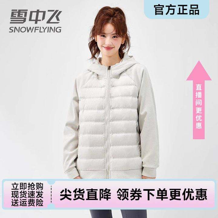 雪中飞鹅绒轻薄羽绒服女2024新款时尚短款拼接卫衣冬季保暖外套