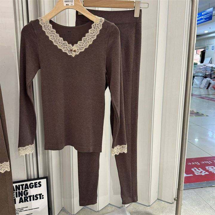 买的咖色,质量很好,有一定厚度,前面也可以当打底穿,五十多一套真的赚了,好像还含羊毛