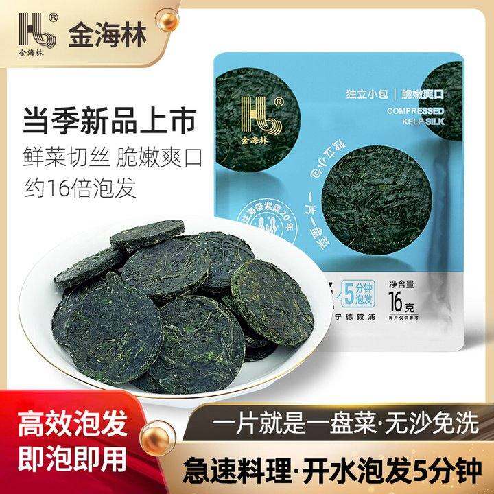 买了很多家压缩海带丝,金海林质量最好,免洗无沙,颜色翠绿,品质非常的好,泡发后量很大,一包能抵得上其他品牌的两包,很香的海带味,凉拌海带丝经常吃,做法简单,蒜末葱花辣椒热油浇一下,加上生抽香醋我一般是一比一的比例,不喜欢酸的可以二比一,蚝油是灵魂一定要加!就完成了。