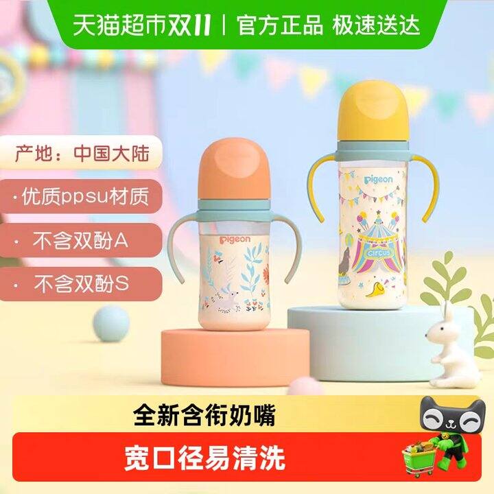 Pigeon贝亲婴儿宽口径彩绘PPSU奶瓶新生儿双把手奶瓶3-9个月+