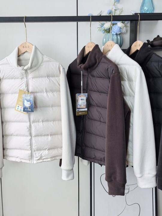 LU同款!轻盈保暖修身显瘦90白鸭绒摇粒绒拼接立领羽绒服外套女冬