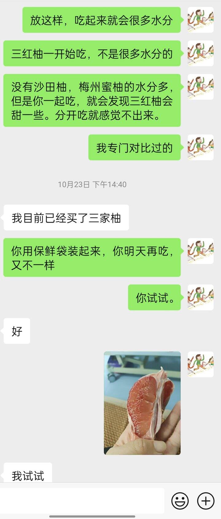 这个用户是之前咸鱼来的,问了很久,又➕了我V,好久才下单,他要了50斤,我的货都给的2斤多的,也是最好吃的,柚子太大干的概率很大,小的呢,一瓣又小,所以我综合以后,都基本是2-3斤之间的。