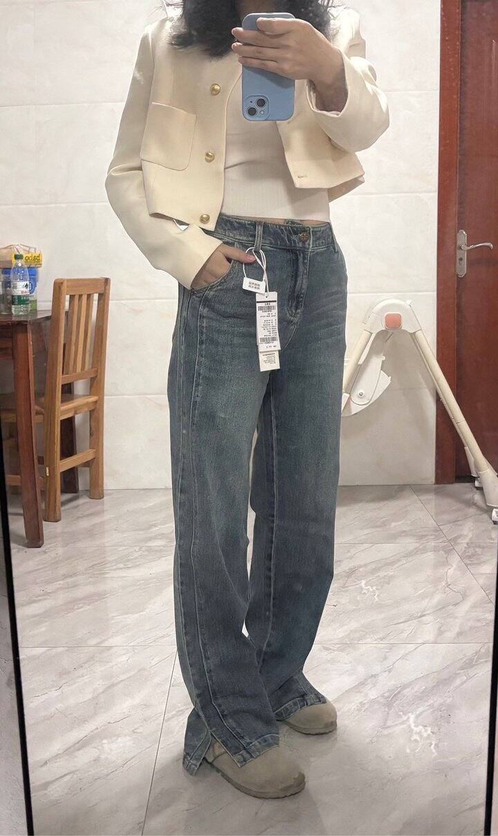 那天逛路口 看姐妹推荐了这条裤子 想着这么便宜买回来试试 结果让我很惊喜啊 163 110斤 穿27码很合适 也很显腿长 家属说好看 留下啦 开心开心~