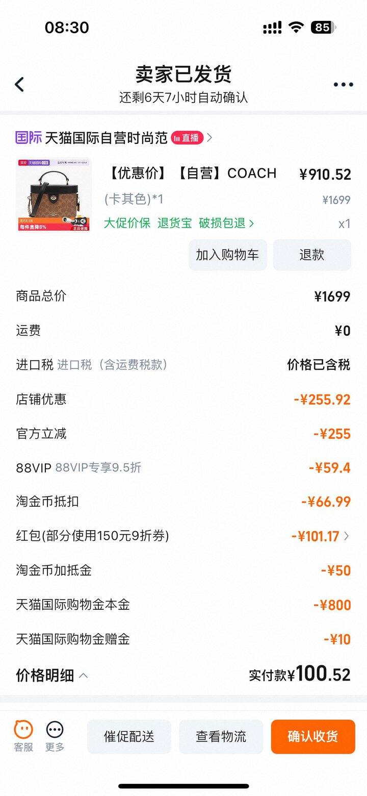 看xhs上棕色款直接就能凑到870➕ 但我还是喜欢卡其色这个~