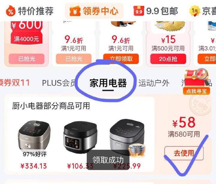 领券中心家电栏领厨小电58券或反复浏览被砸 https://u.jd.com/pOEX4lm