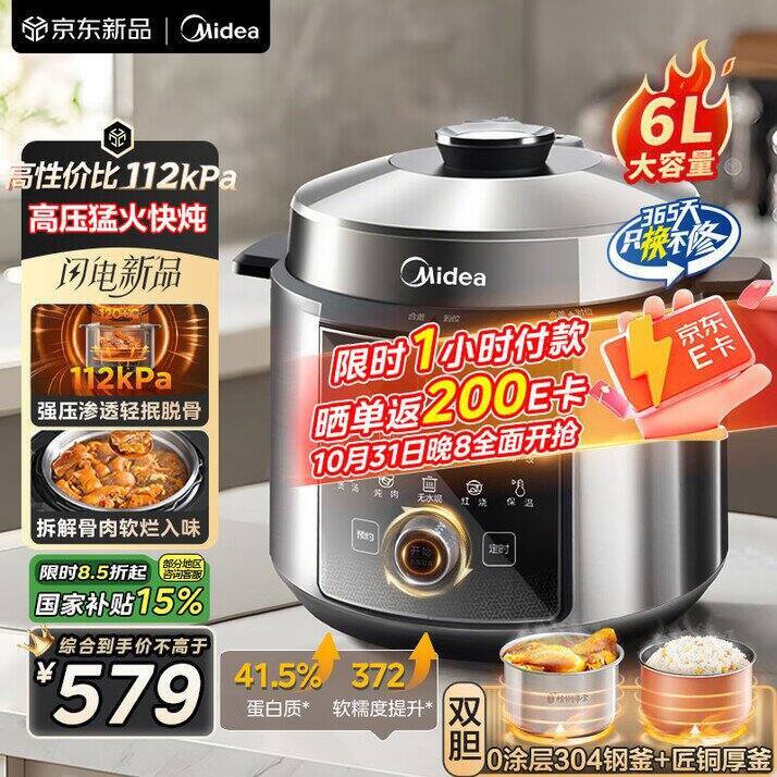 美的0涂层钢厚釜电压力锅6L https://u.jd.com/pgEXPJu