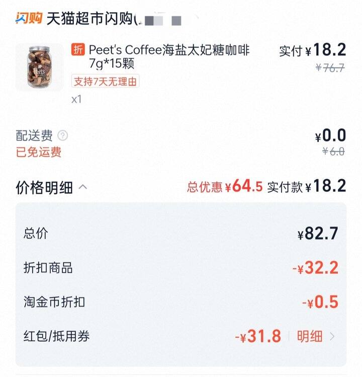 🔵皮爷海盐太妃糖15颗——18.2元(经常刷到推荐,买来尝尝)