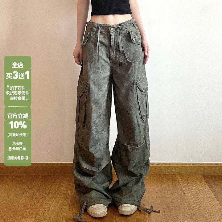 WEEKEEP 美式复古迷彩工装裤女嘻哈百搭帅气宽松垂感牛仔休闲裤潮