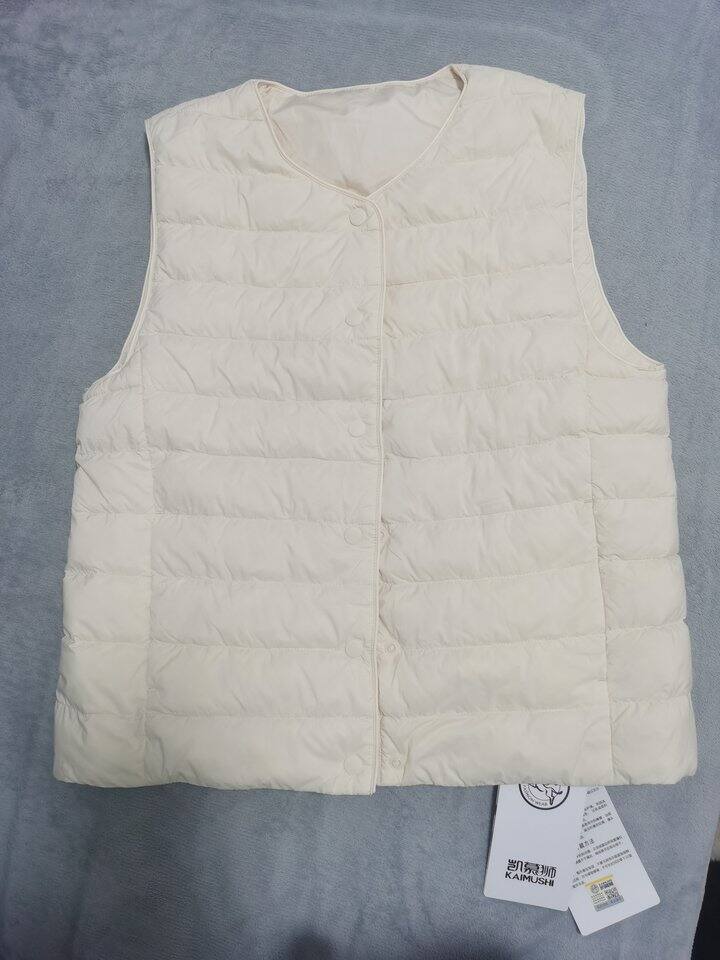 在路口看到意向贴的时候就特别种草 怕冷星人也想在冬天穿的好看一点 就特别想买一件羽绒背心 买之前一直在纠结要买什么码 就一直问店主 店主人也很耐心 一一解答 收到货后先试了一下回弹度 还不错 那就是真羽绒了哈哈 然后上身它不是紧身的 稍微偏宽松一些 套在外面还挺好看的