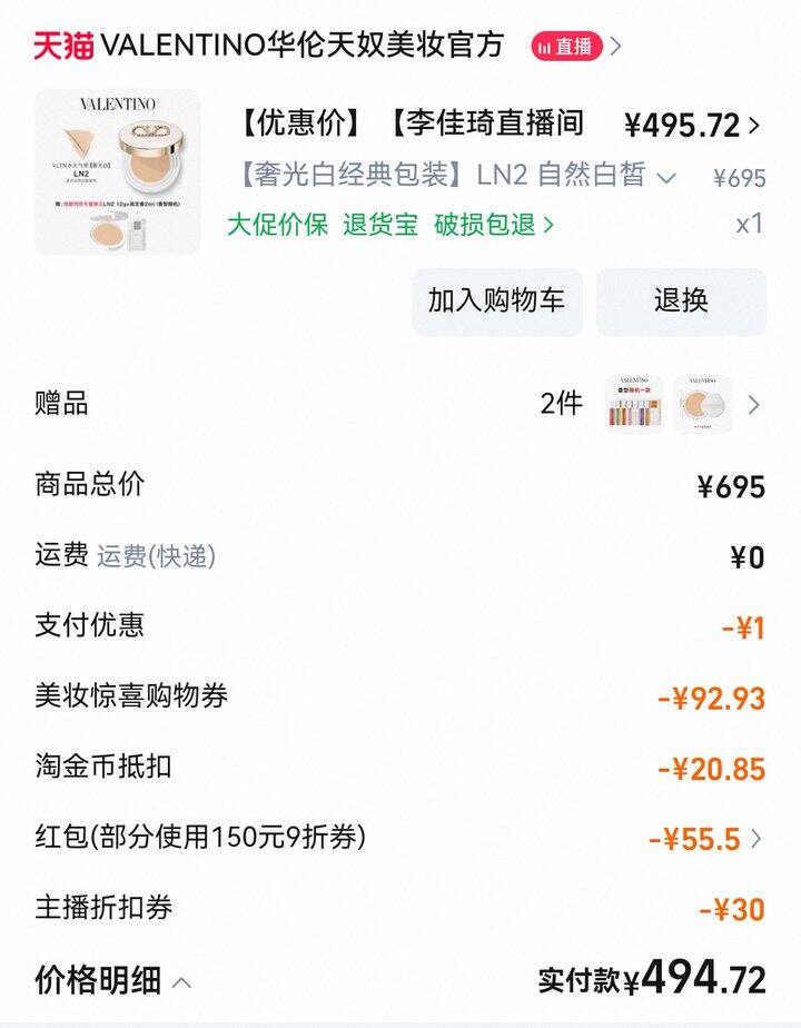 气垫:496在华伦天奴和ysl直接选择了前者,因为ysl有好多晒单300多就买到了[鹿翻白眼]据说适合干皮,买来放办公室没化妆的时候用一下!