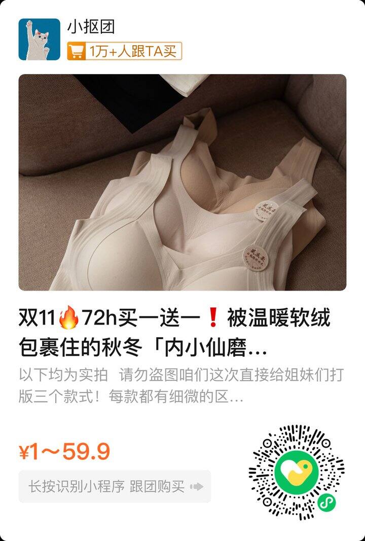 这个牌子内衣超级舒服,夏款卖了很多回购率也高。今天我们团的秋冬款。