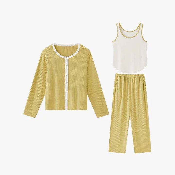 【自由穿罗纹家居服】松山棉店睡衣女长袖三件套情侣男士春秋套装