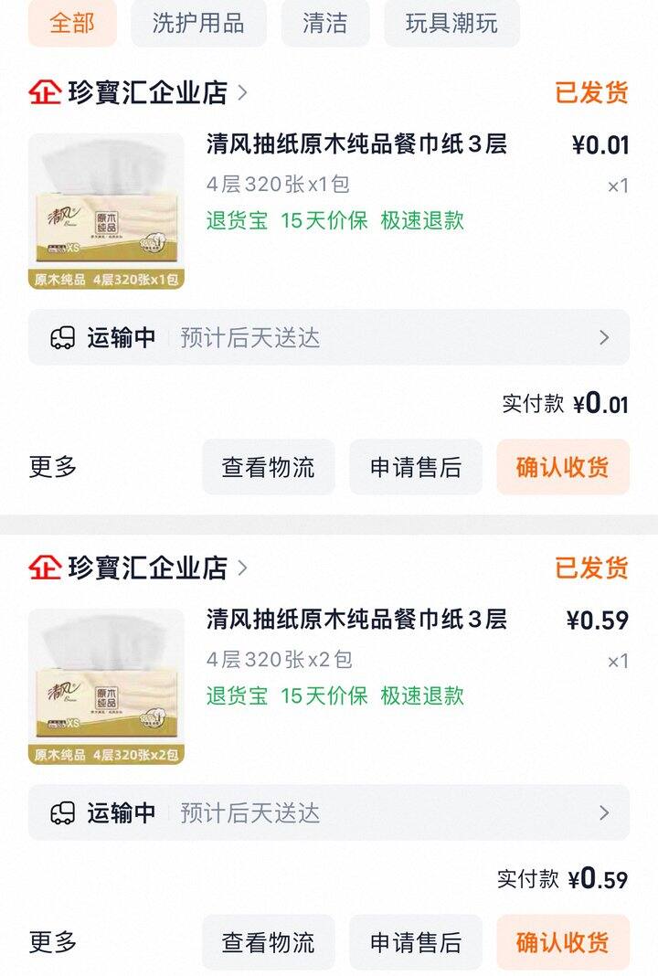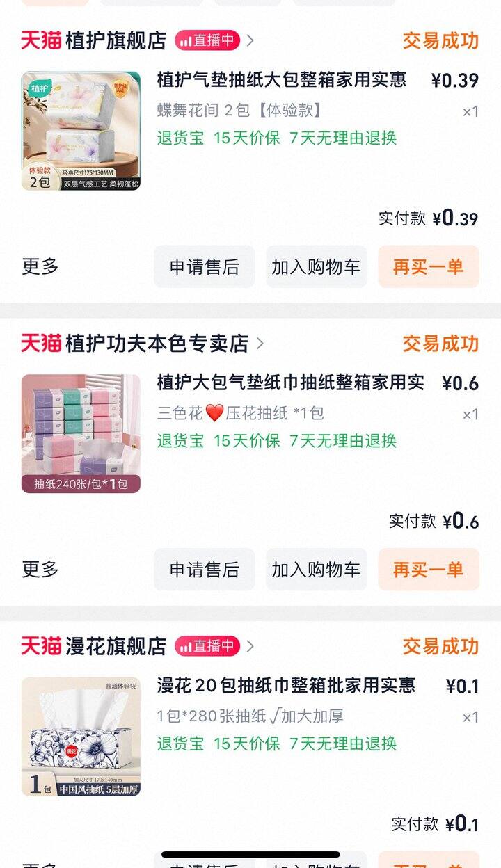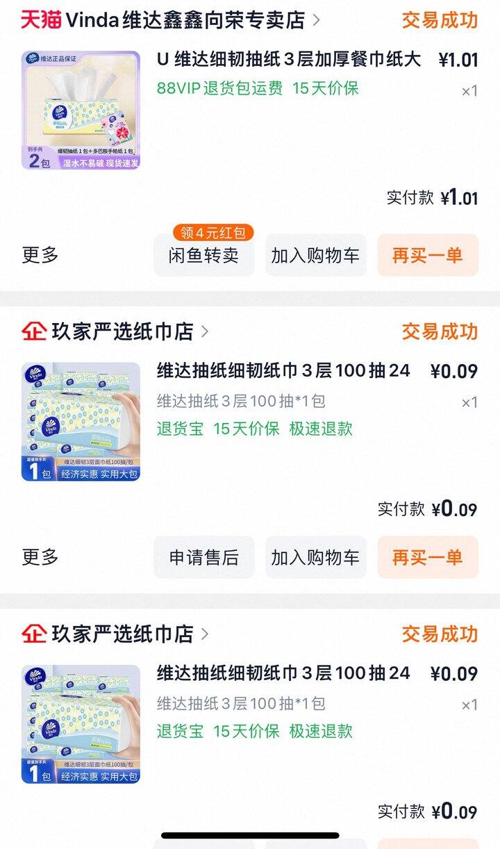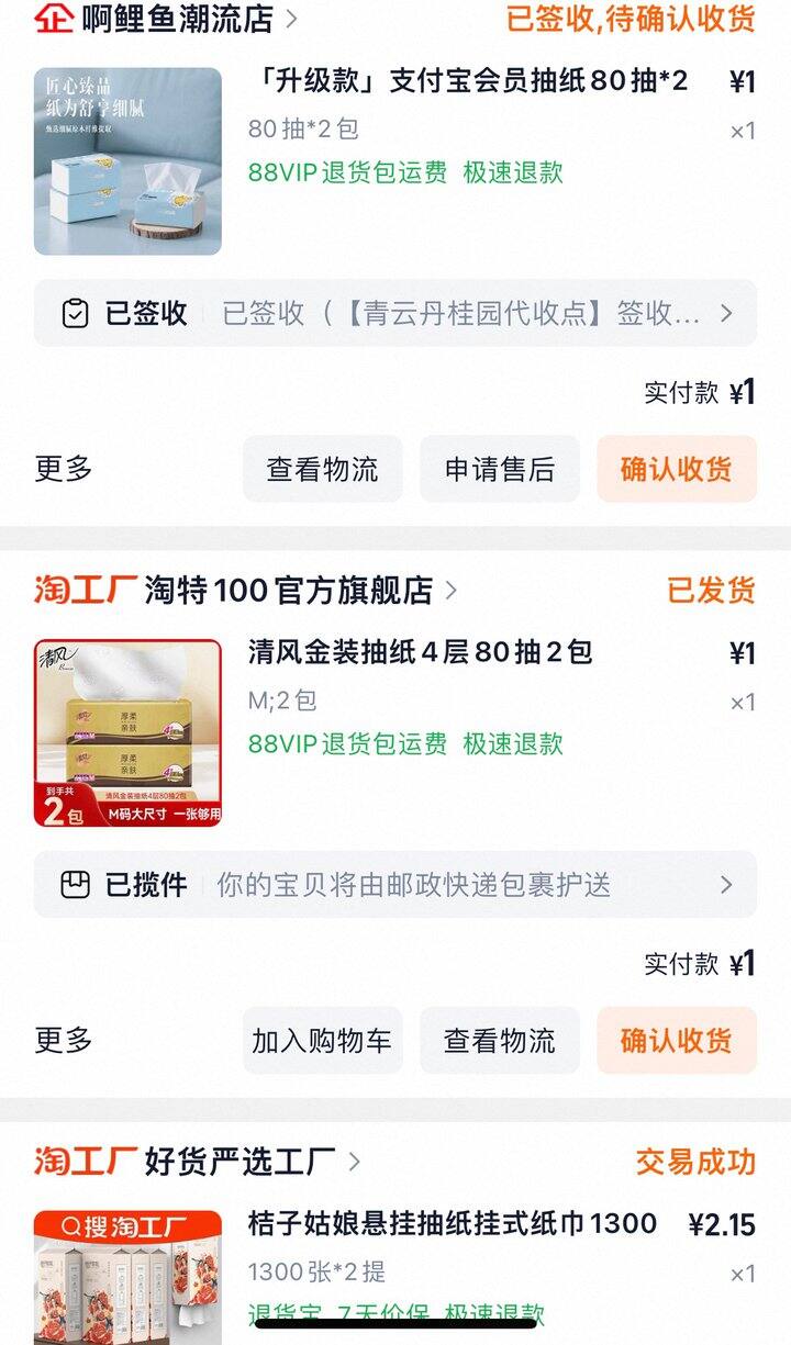 主要是88vip每天2r。和淘宝秒杀给的1块5,3块红包。便宜的抽纸是真差点事,还是认准大牌子吧