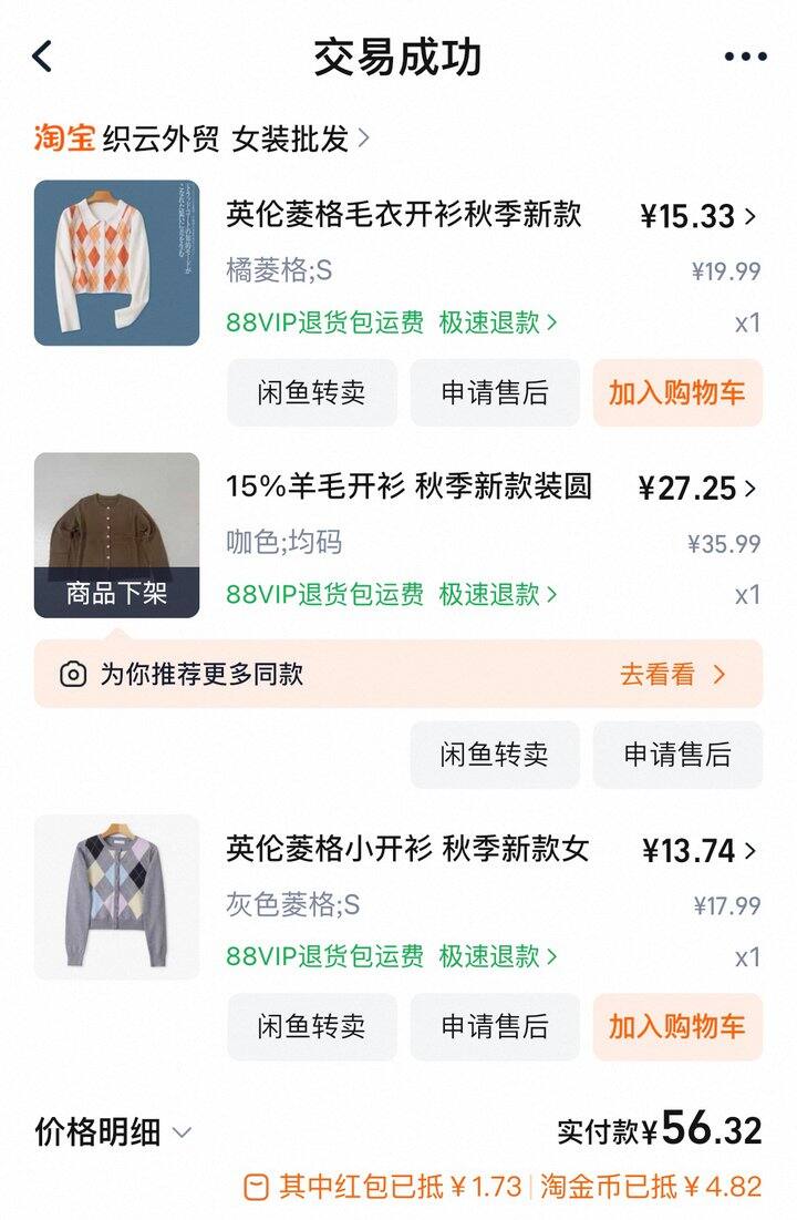 他家质量真是不错,买了两款菱格开衫都很有分量。羊毛开衫他家上了很多。
