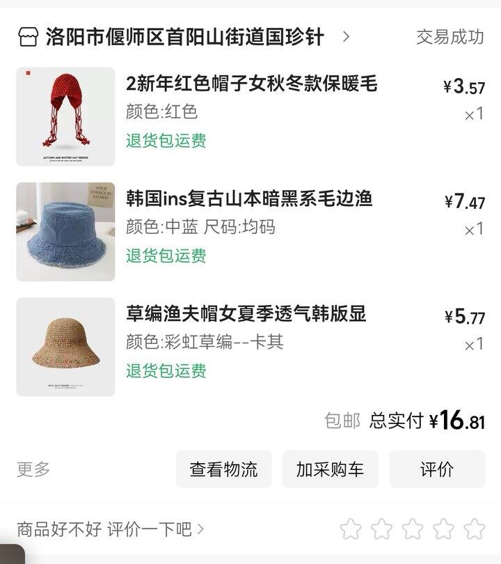 这家整体版型不行。第一个塌塌的,第二个版型尤其差,戴不出门,第三个草帽勉勉强强: