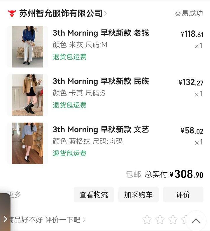智允家的衣服,还行,衬衫太容易皱了,外套很好看,裤子尺码刚刚好