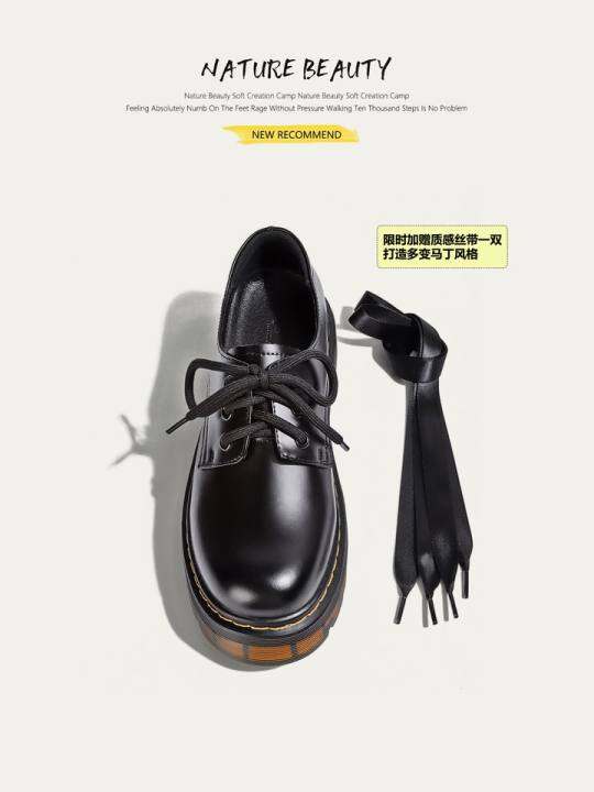自然卷马丁鞋女秋季新款厚底真皮复古通勤单鞋圆头英伦风小皮鞋
