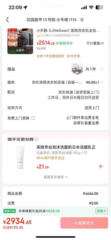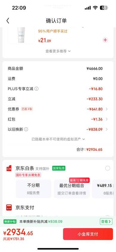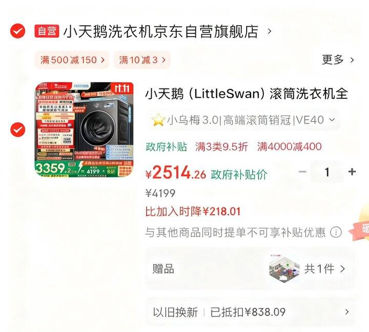 把凑单加进去的时候国补会消失 价格变成3000多 只需在提交页面 选以旧换新即可恢复